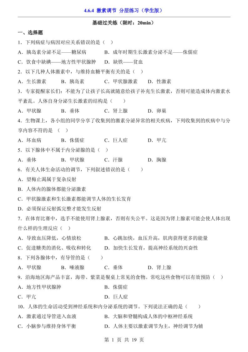 4.6.4 激素调节(分层练习)