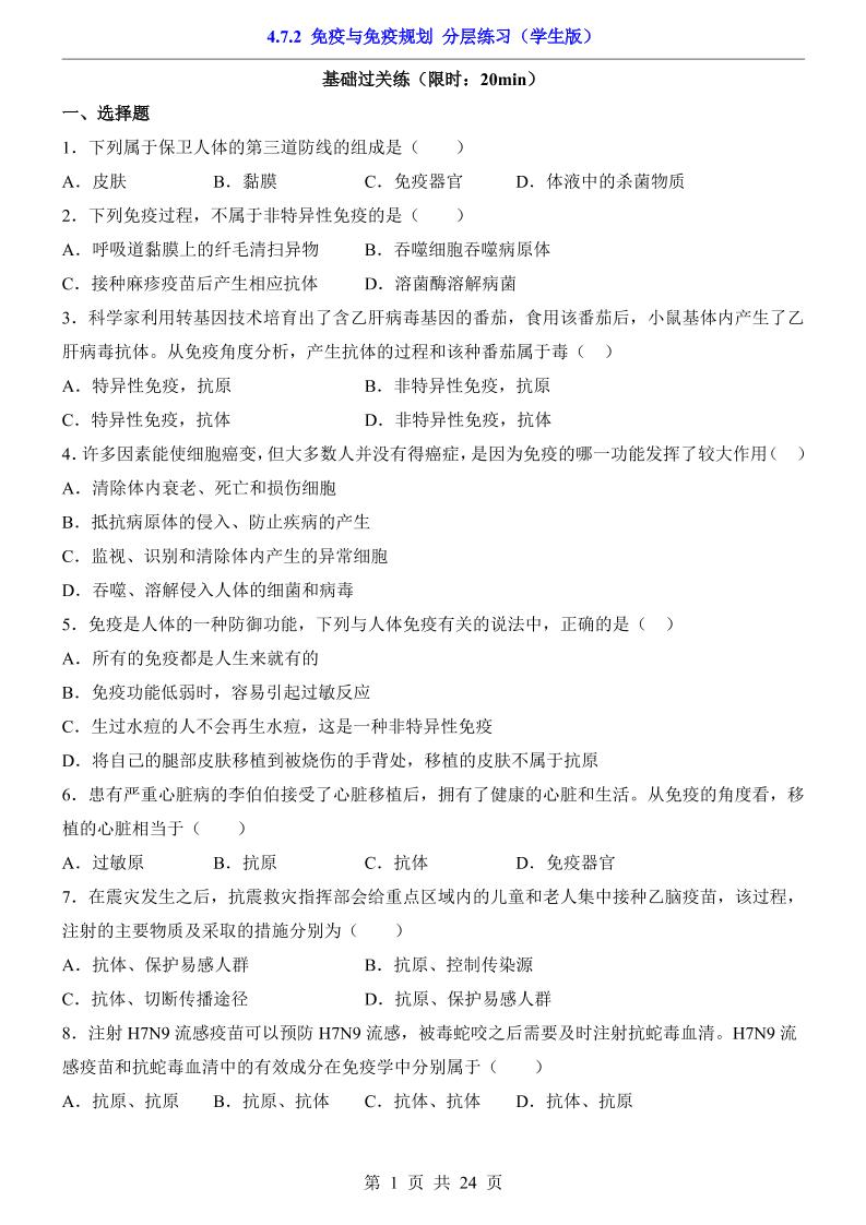 4.7.2 免疫与免疫规划(分层练习)