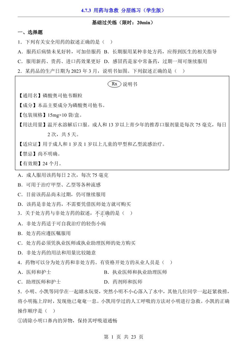 4.7.3 用药与急救(分层练习)