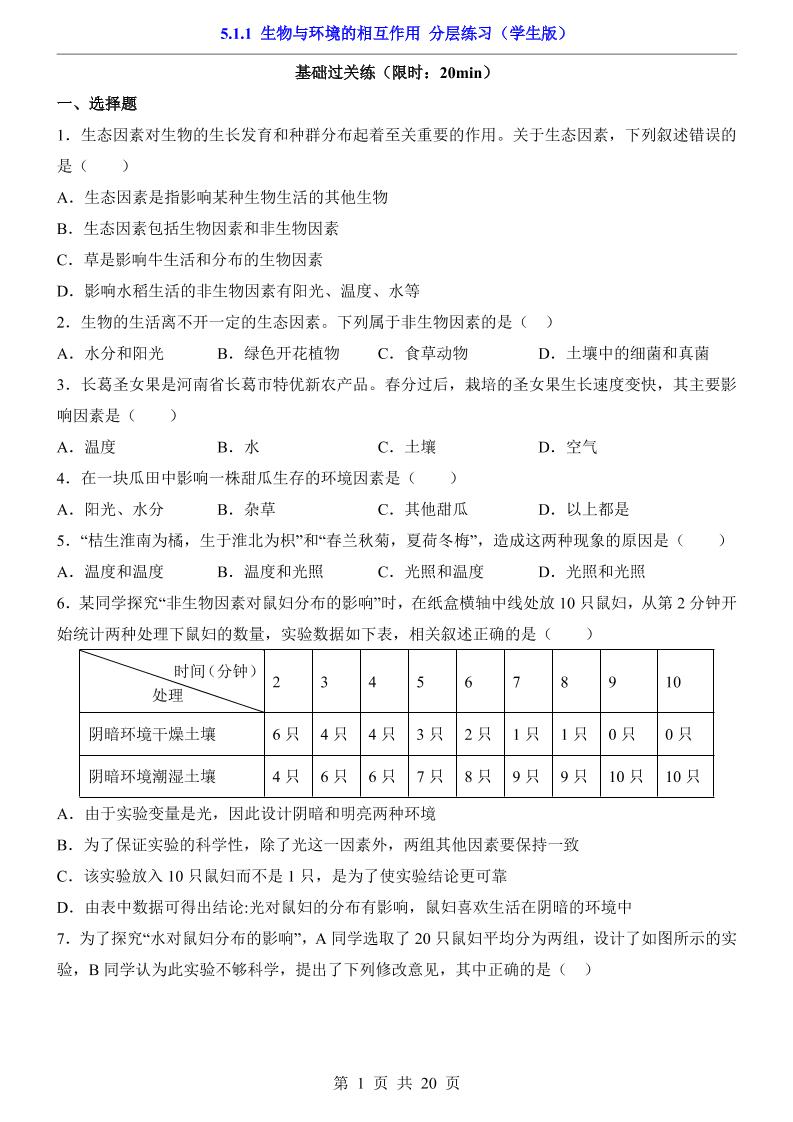 5.1.1 生物与环境的相互作用(分层练习)