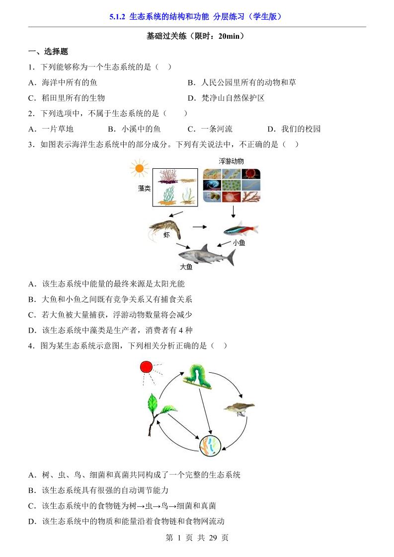 5.1.2 生态系统的结构和功能(分层练习)