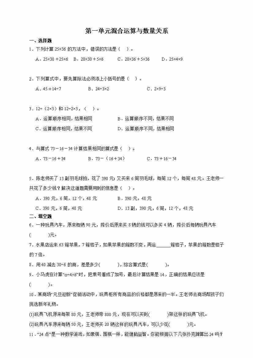 三年级(上)数学 第四单元测试卷《苏教版》1