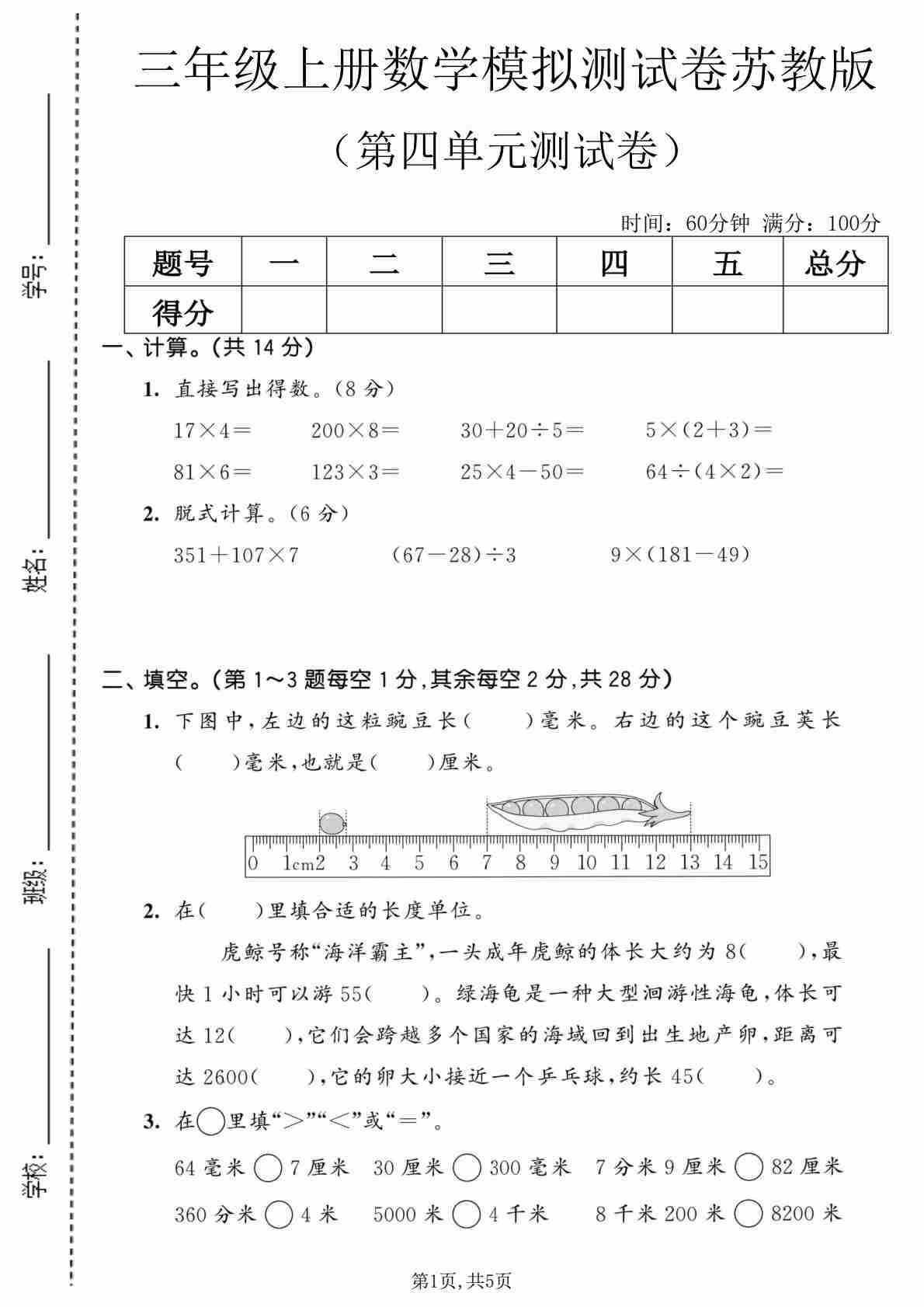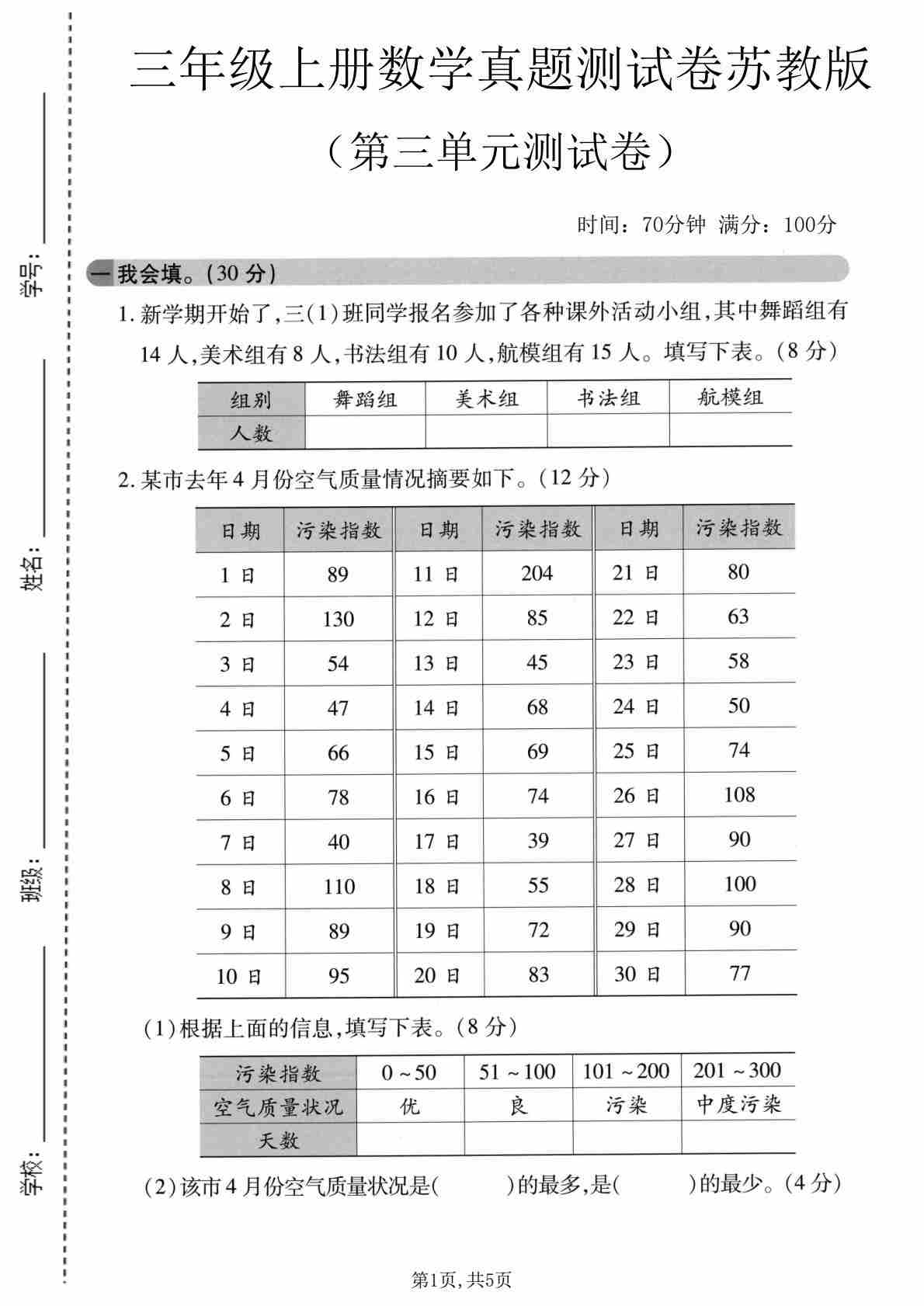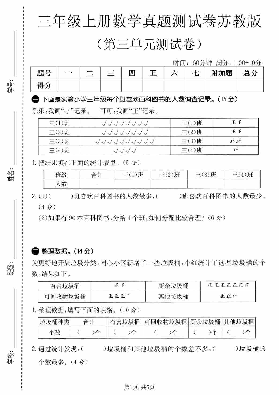 三(上)2025秋苏教版数学【第五单元拔尖测试卷】
