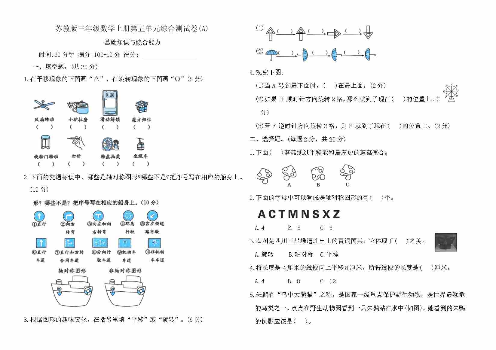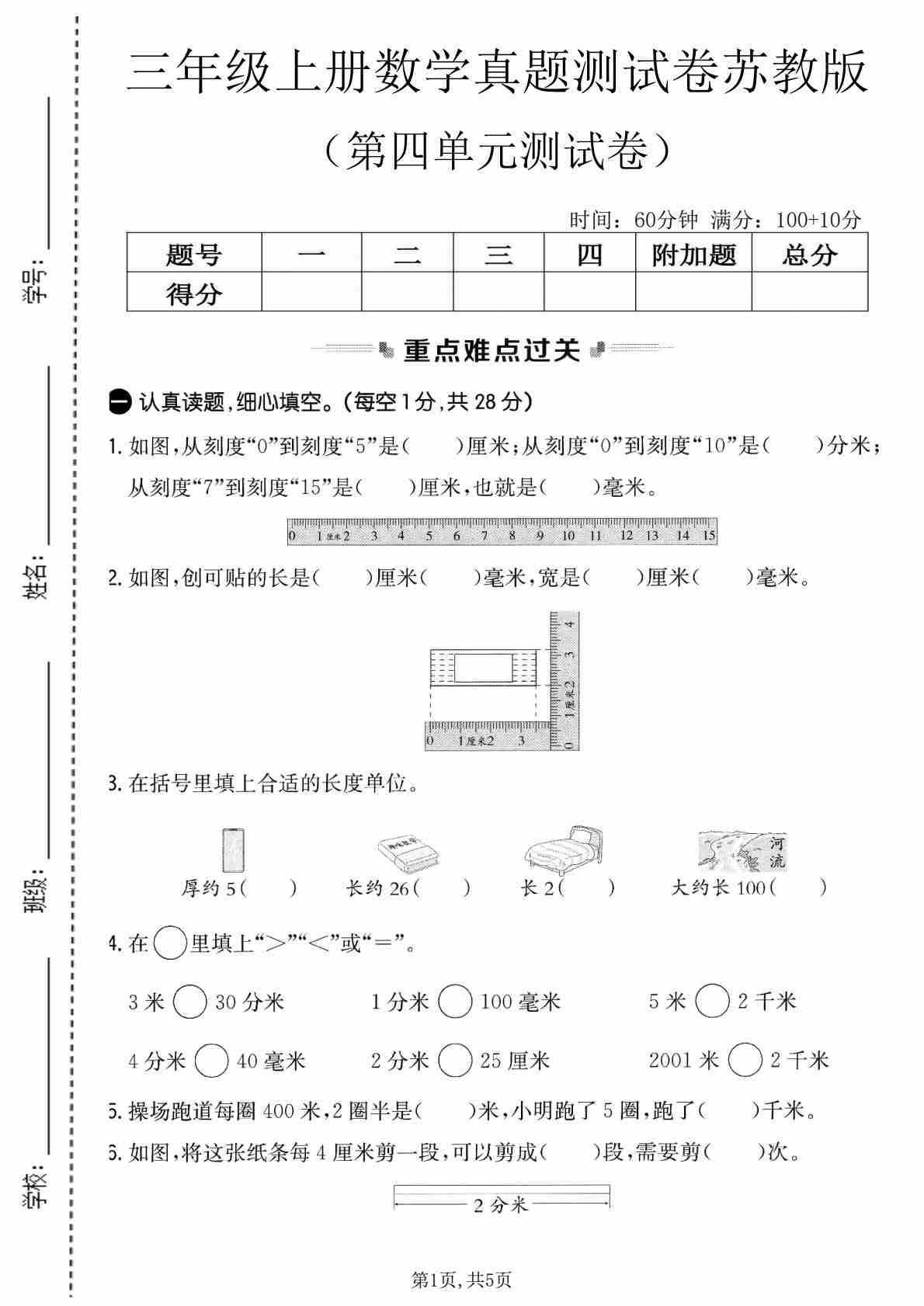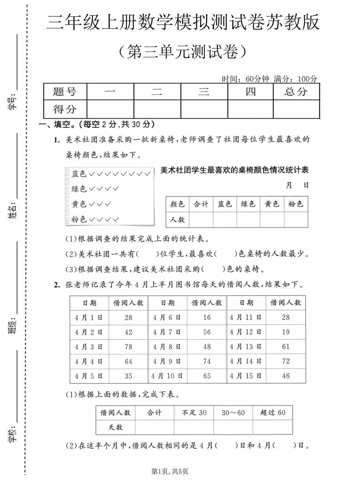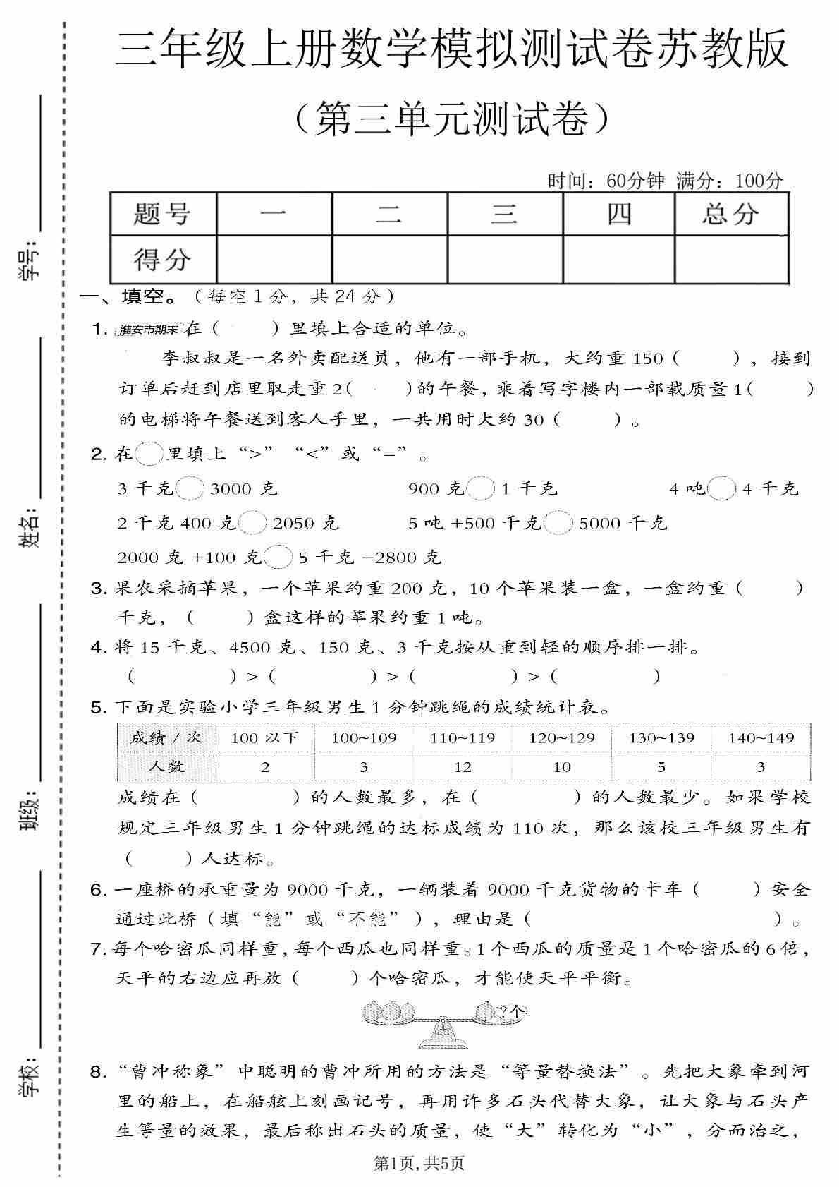 三(上)2025秋苏教版数学【第五单元拔尖测试卷】