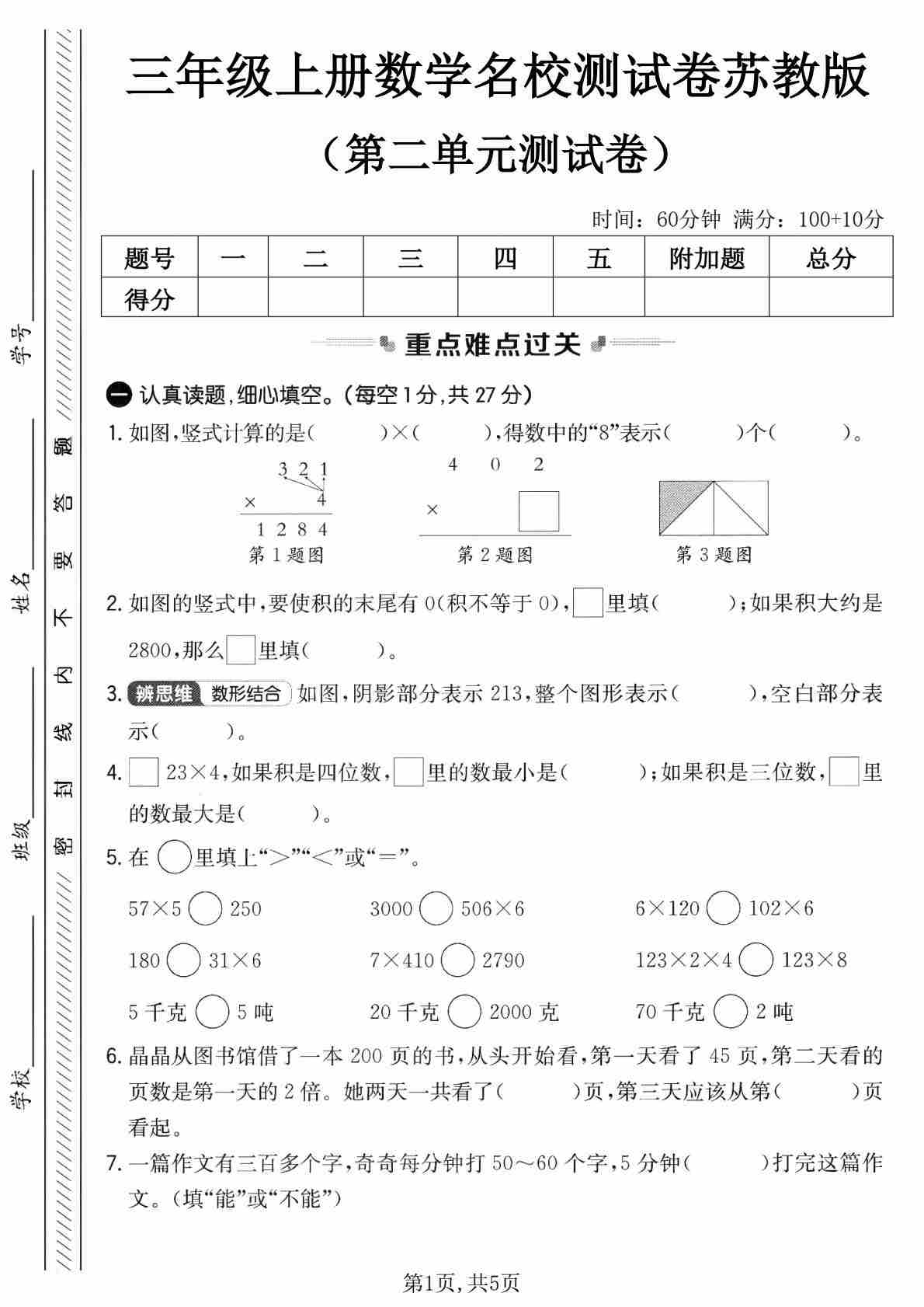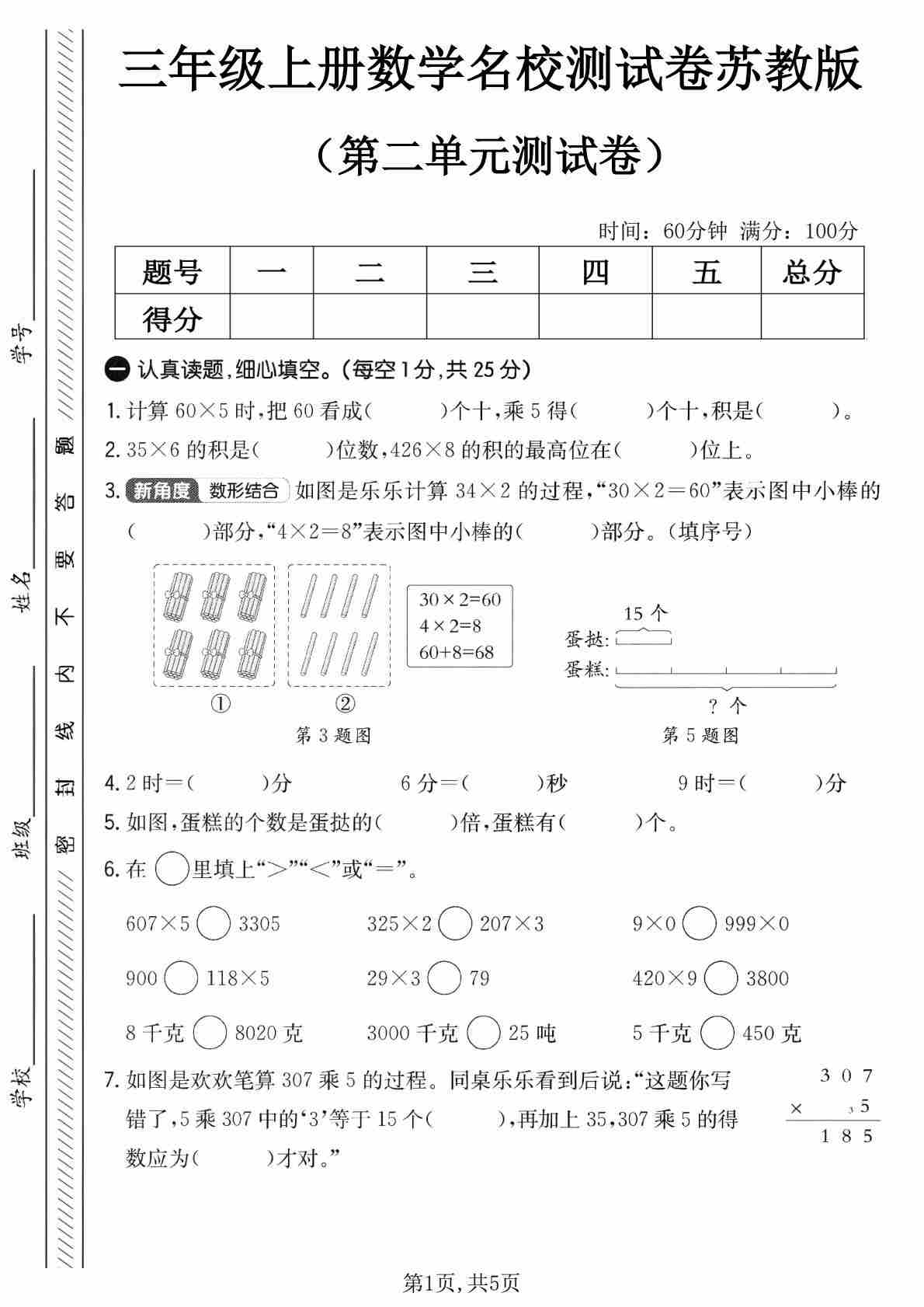 三(上)2025秋苏教版数学【第二单元名校测试卷1】