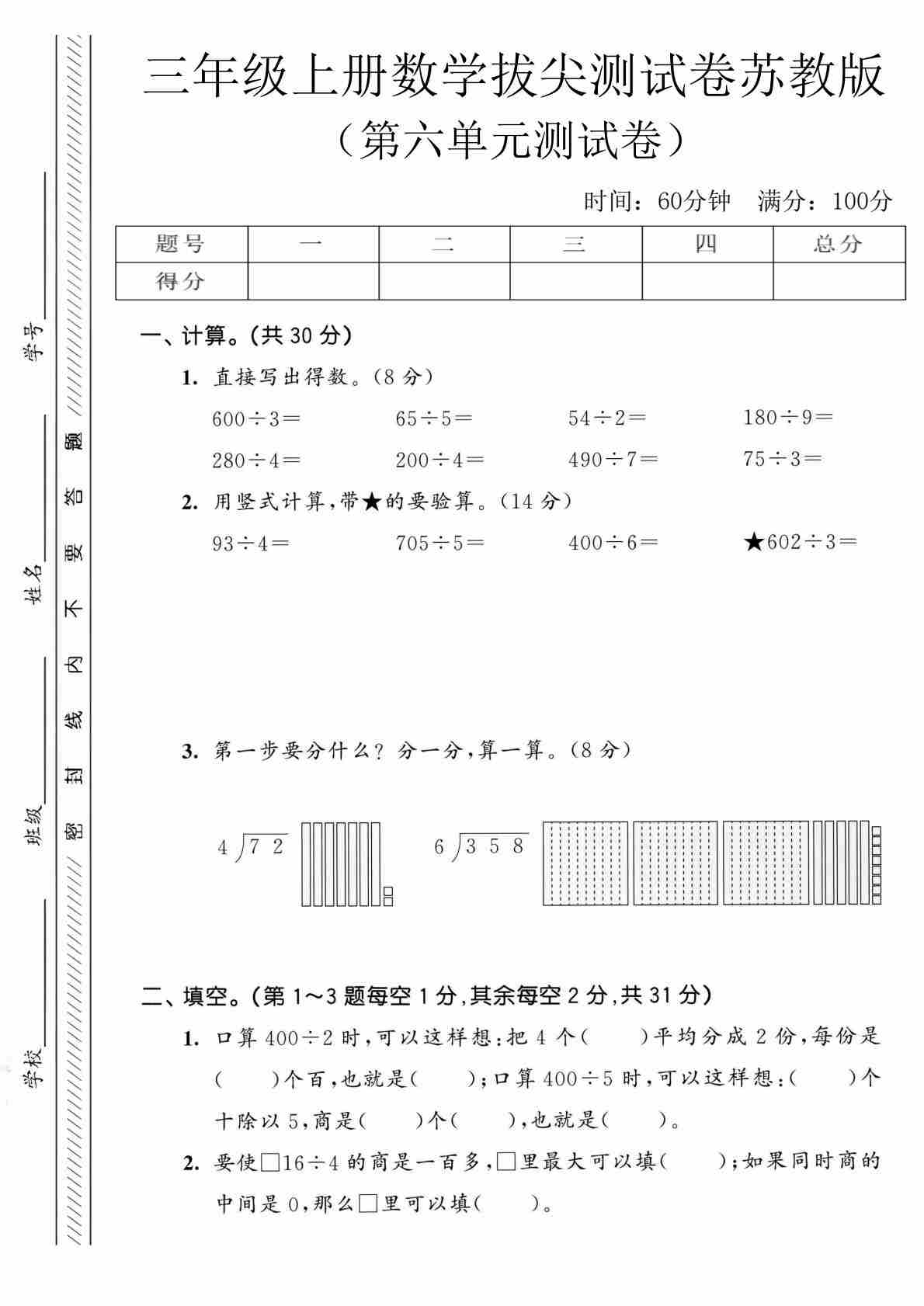三(上)2025秋苏教版数学【第六单元拔尖测试卷】