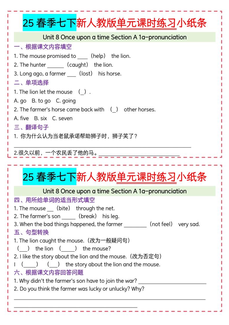 Unit8七下人教课时练习小纸条