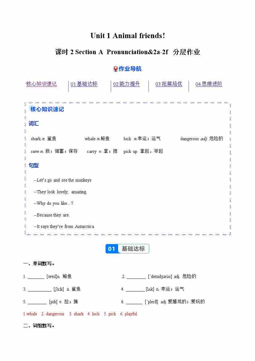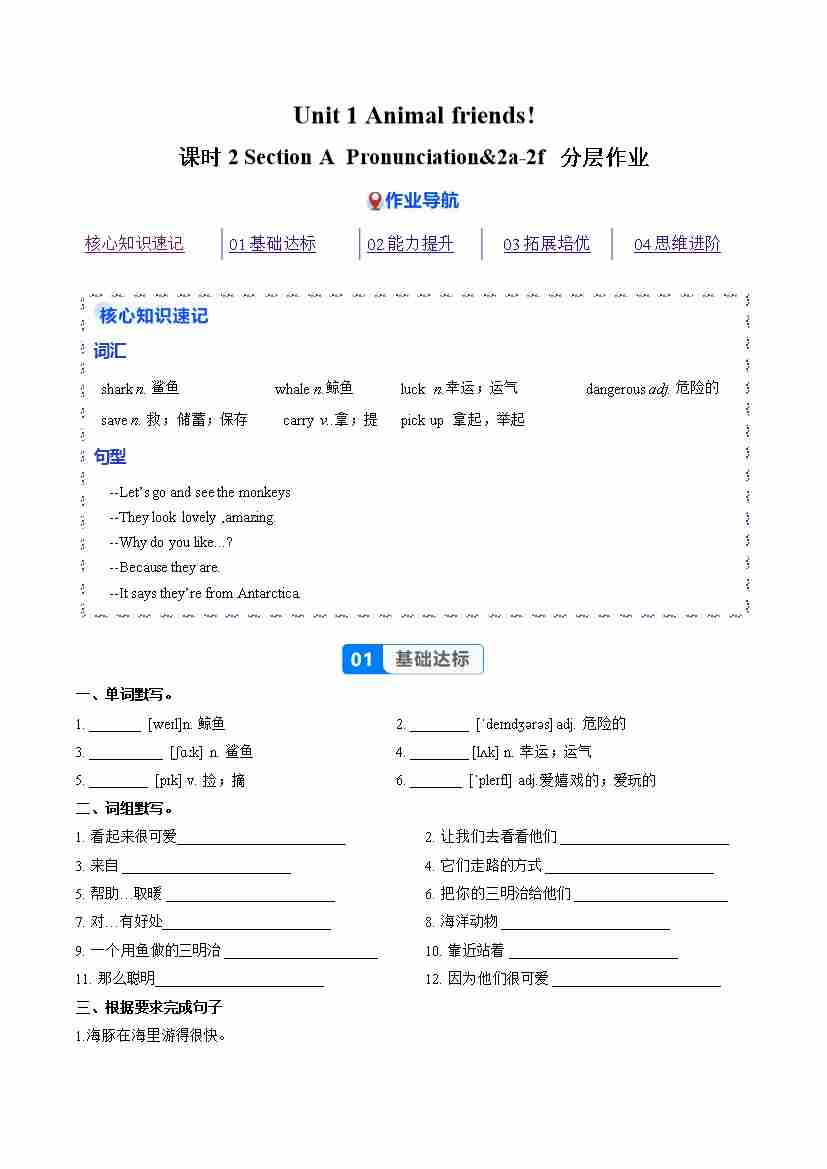 Unit 1 课时2 Section A Pronunciation&2a-2f(分层作业)(解析版)