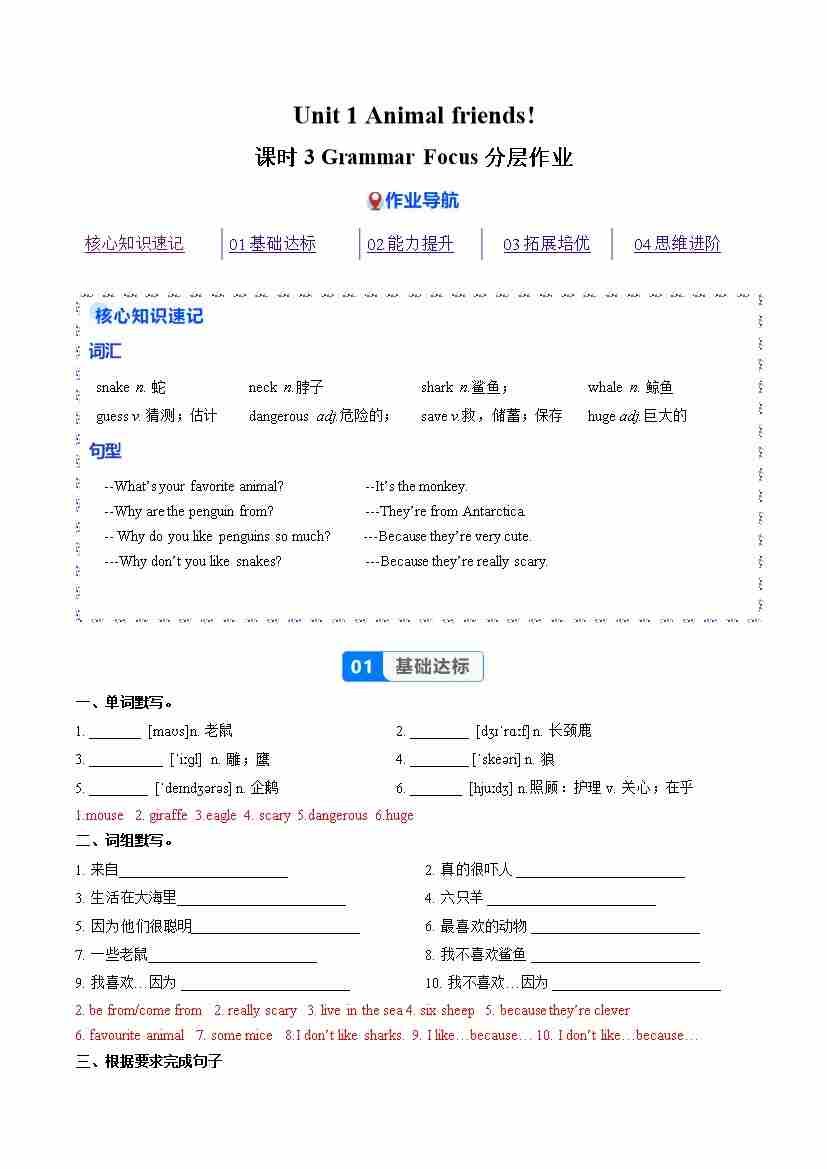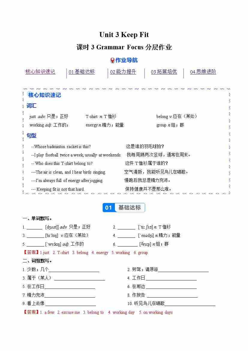 Unit 1 课时3 Section A Grammar Focus(分层作业)(解析版)