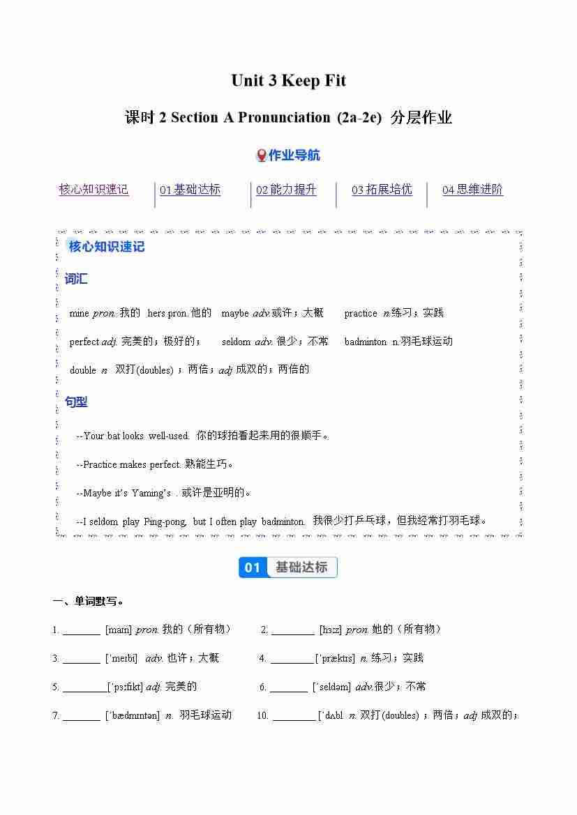 Unit 3 课时2 Section A Pronunciation&2a-2e(分层作业)(解析版)