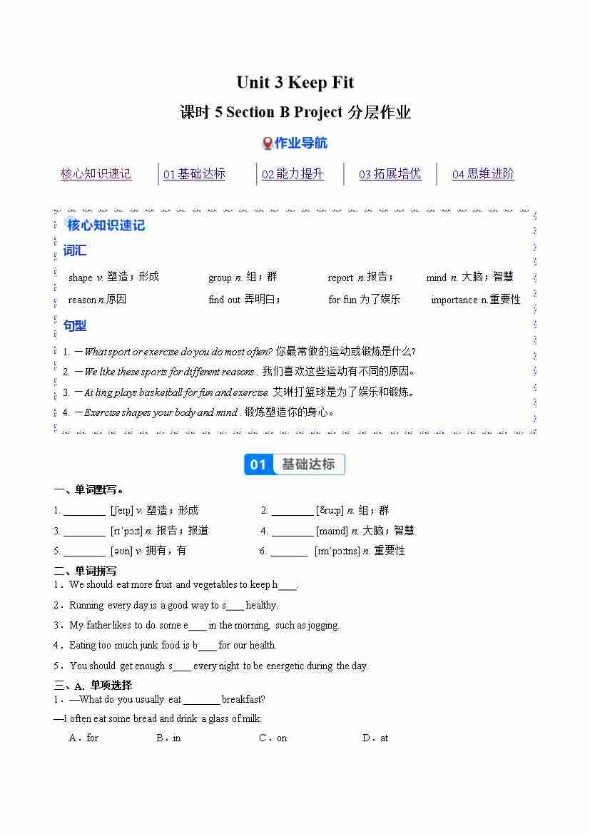 Unit 2 课时5 Section B project(分层作业)(解析版)