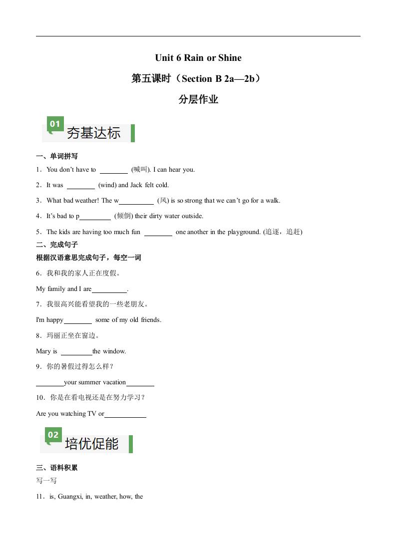 Unit 6 第5课时 Section B(2a-2b)(原卷版)