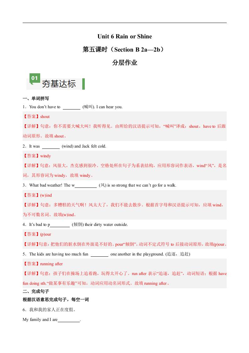 Unit 6 第5课时 Section B(2a-2b)(解析版)