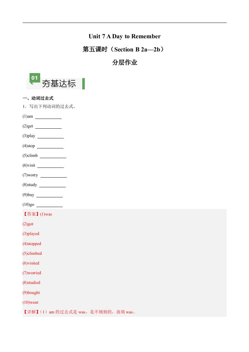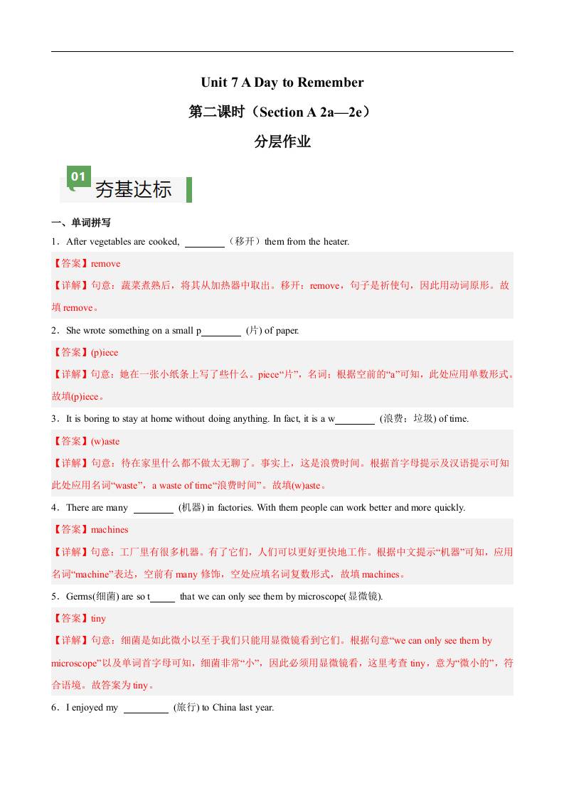 Unit 7 第2课时 Section A(2a-2e)(解析版)