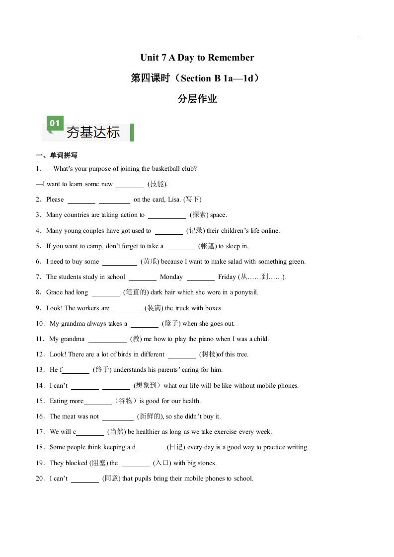Unit 7 第4课时 Section B(1a-1d)(原卷版)