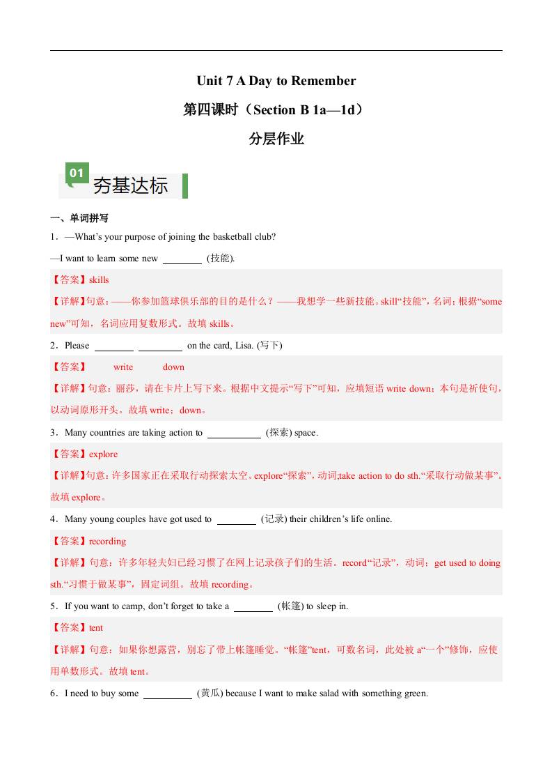 Unit 7 第4课时 Section B(1a-1d)(解析版)