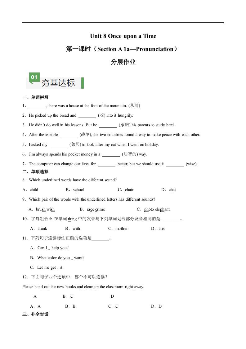 Unit 8 第1课时 Section A(1a-Pronunciation)(原卷版)
