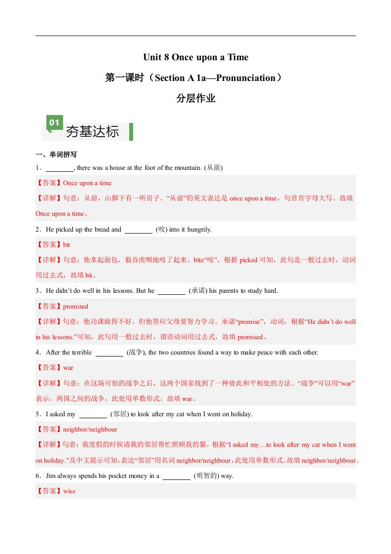 Unit 8 第1课时 Section A(1a-Pronunciation)(解析版)