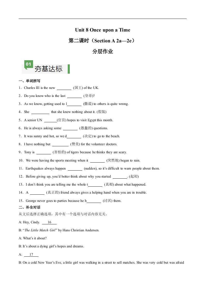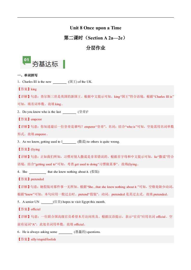 Unit 8 第2课时 Section A(2a-2e)(解析版)