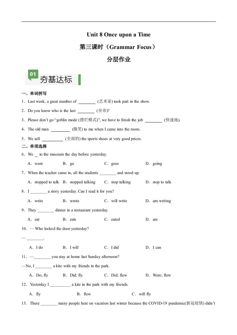 Unit 8 第3课时 Section A(Grammar Focus)(解析版)