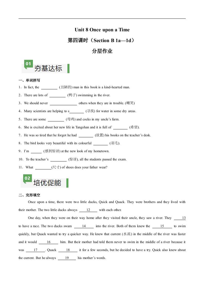 Unit 8 第4课时 Section B(1a-1d)(原卷版)