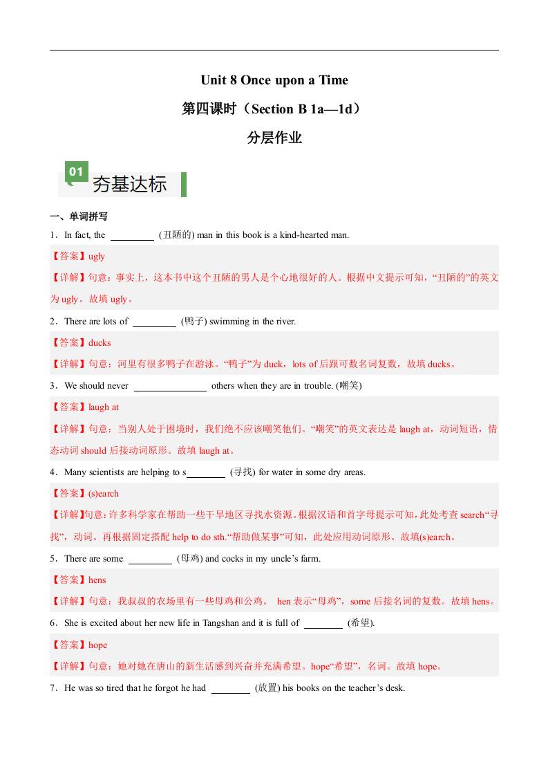 Unit 8 第4课时 Section B(1a-1d)(解析版)
