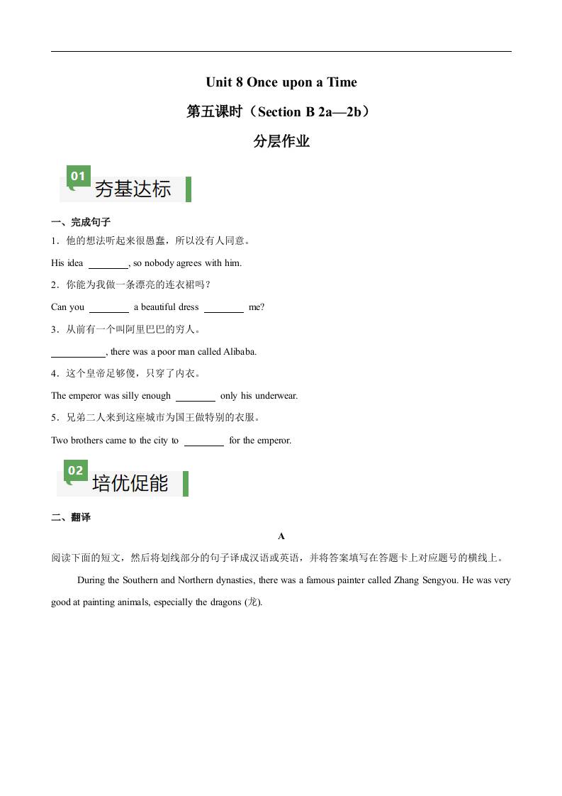 Unit 8 第5课时 Section B(2a-2b)(原卷版)
