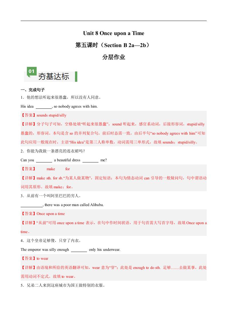 Unit 8 第5课时 Section B(2a-2b)(解析版)