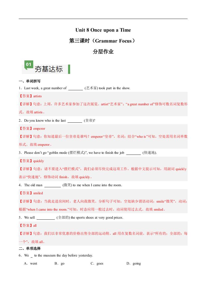 Unit 8 第3课时 Section A(Grammar Focus)(解析版)