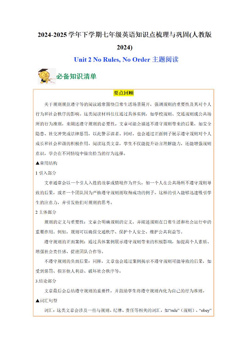 Unit 2 No Rules,No Order 规则(话题阅读精练)(原卷版)