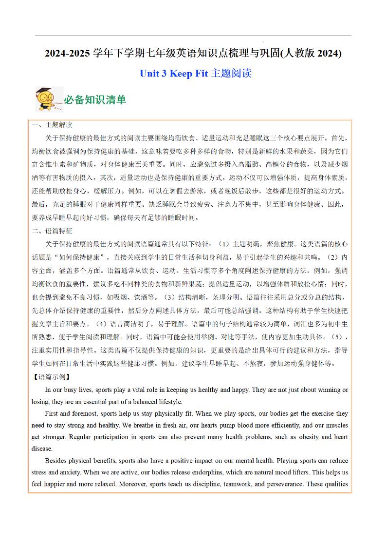 Unit 3 Keep Fit(主题阅读)(原卷版)