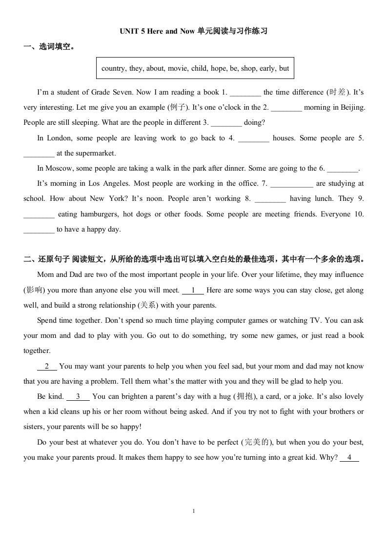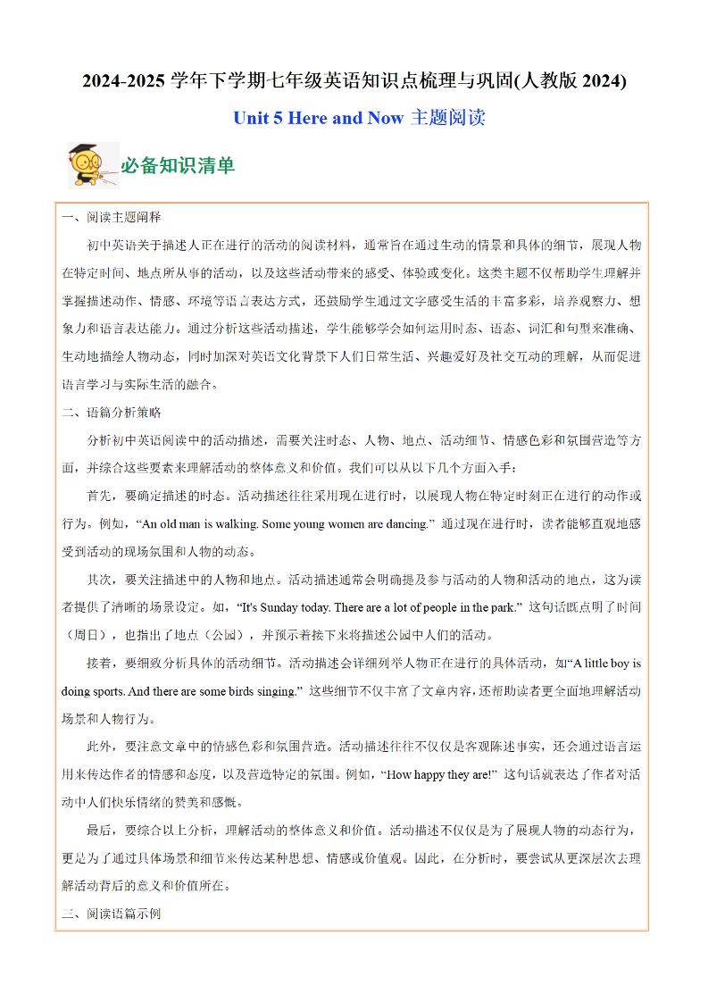 Unit 5 Here and Now(主题阅读)(原卷版)