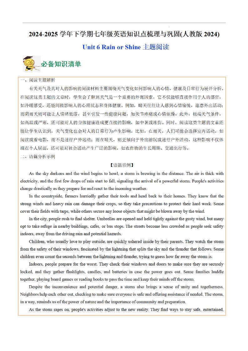 Unit 6 Rain or Shine(主题阅读)(解析版)