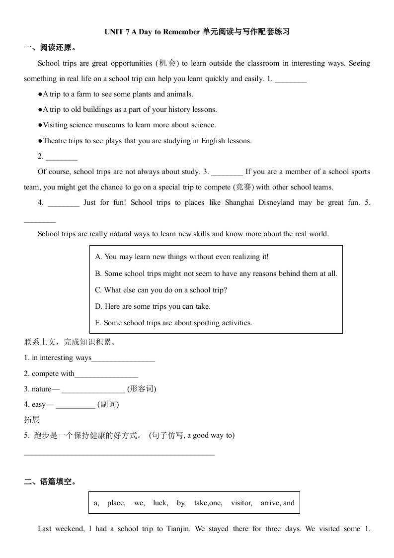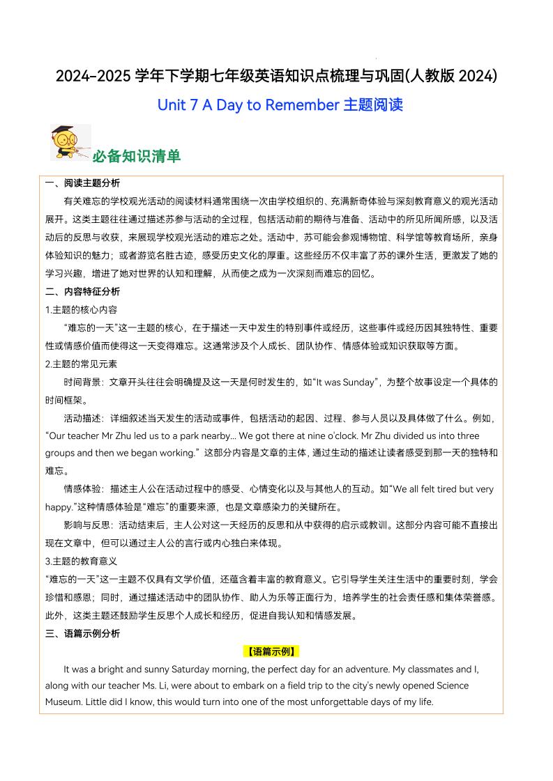 Unit 7 A Day to Remember(主题阅读)(解析版)