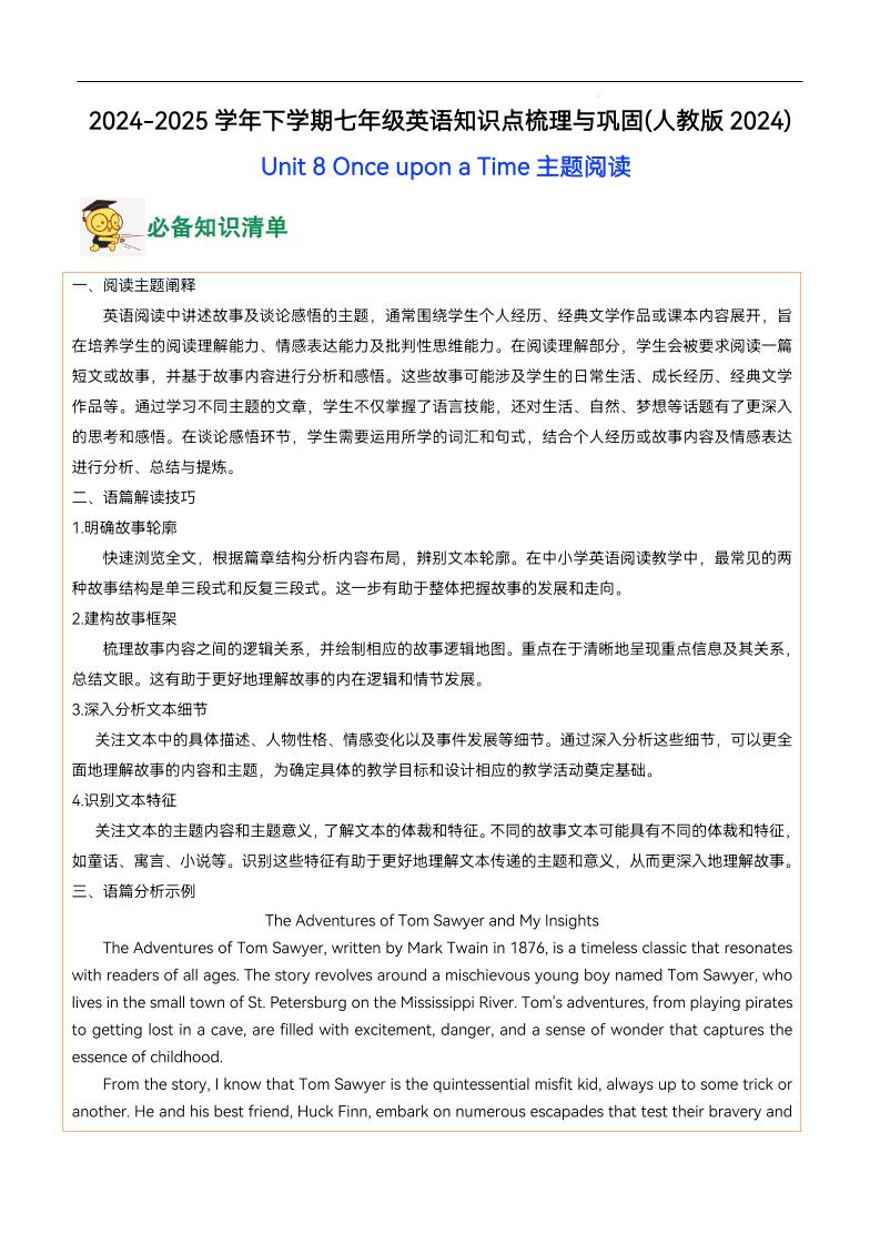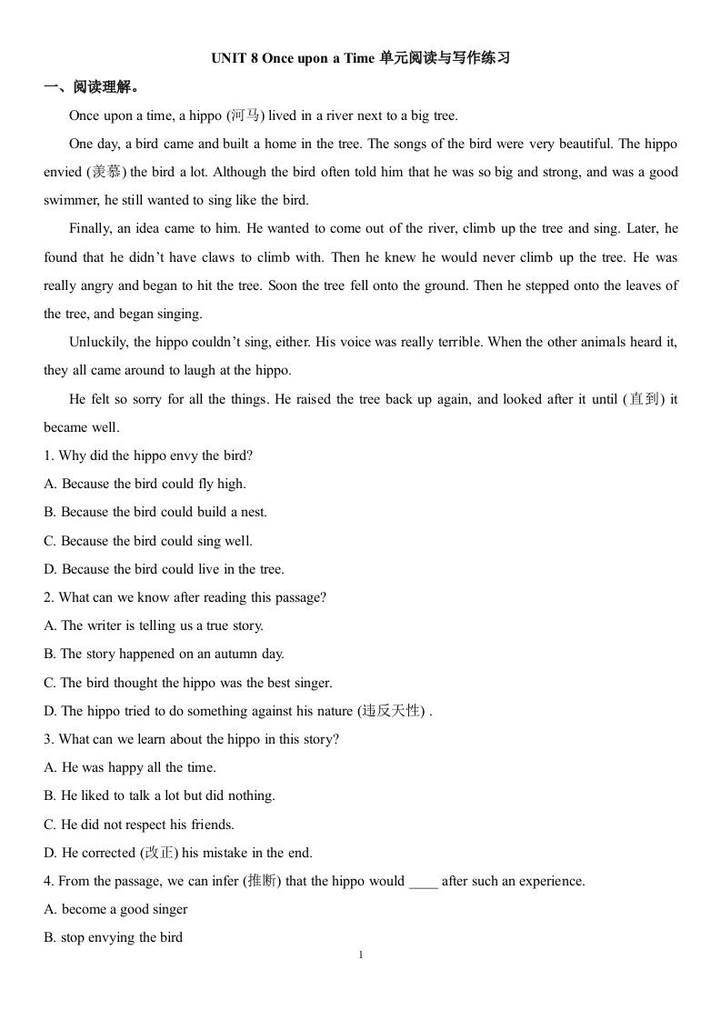Unit 8 Once upon a Time(主题阅读)(原卷版)