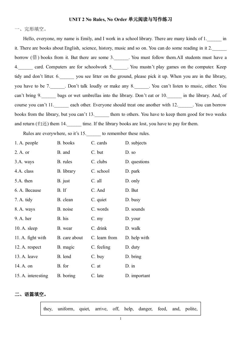 Unit2 NoRules,NoOrder单元阅读与写作练习