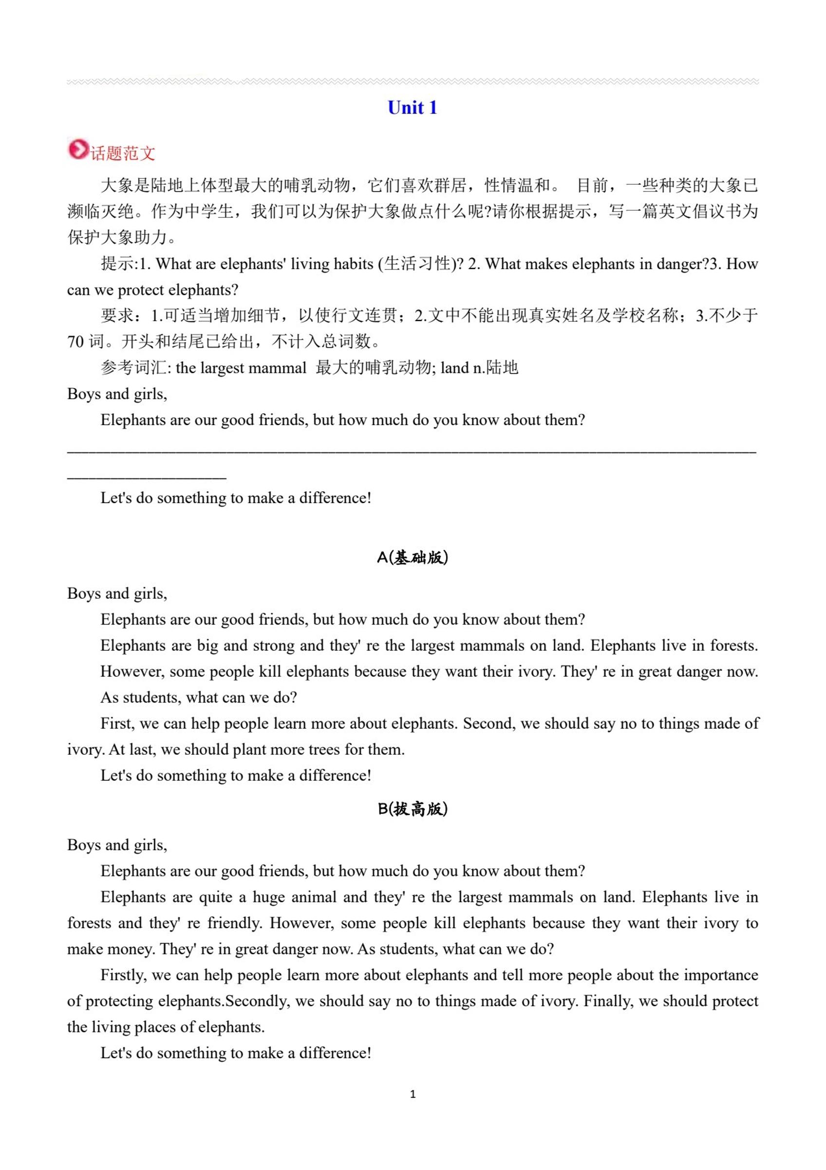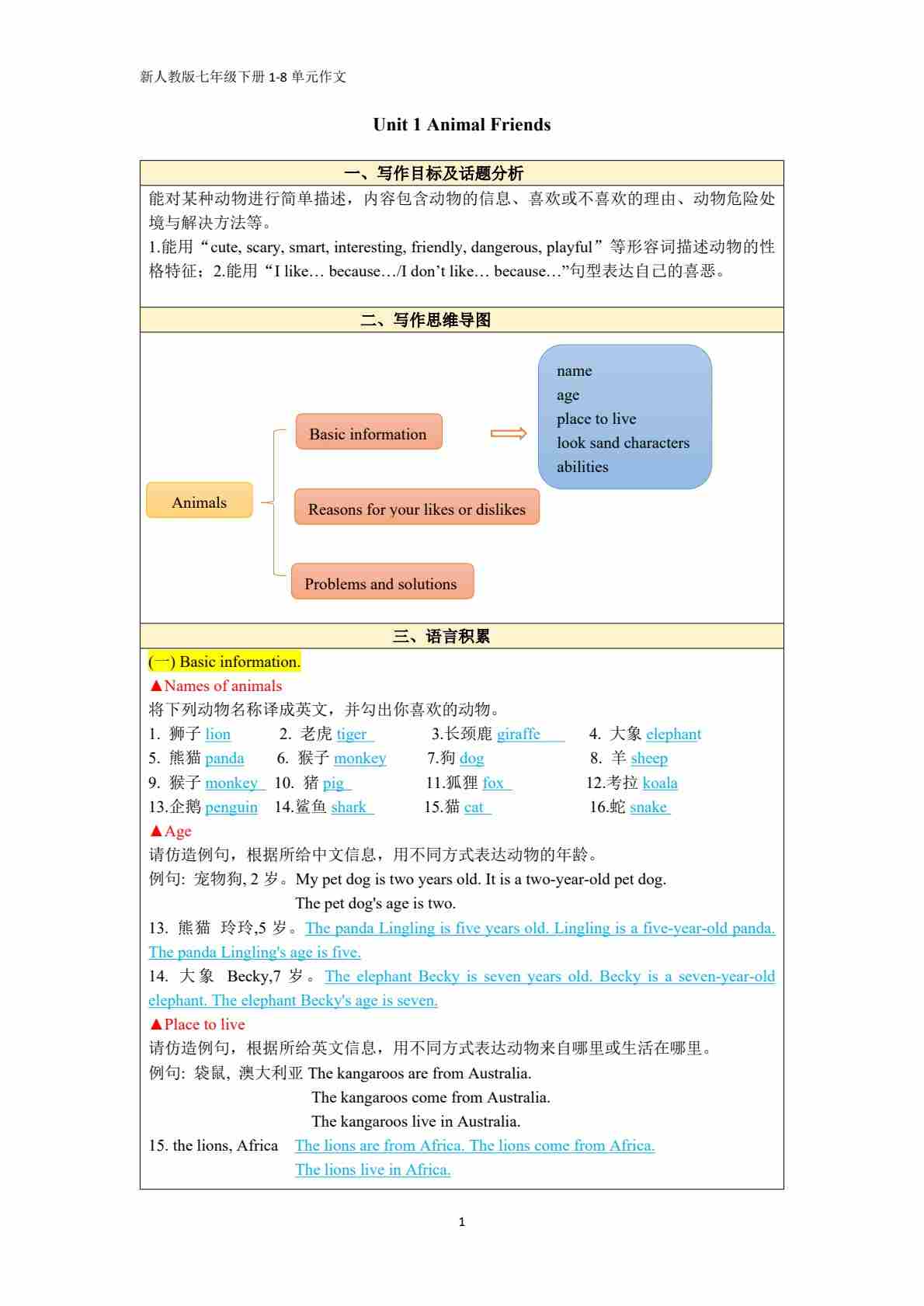 Unit 1 Animal Friends 动物朋友(单元写作精练)(解析版)