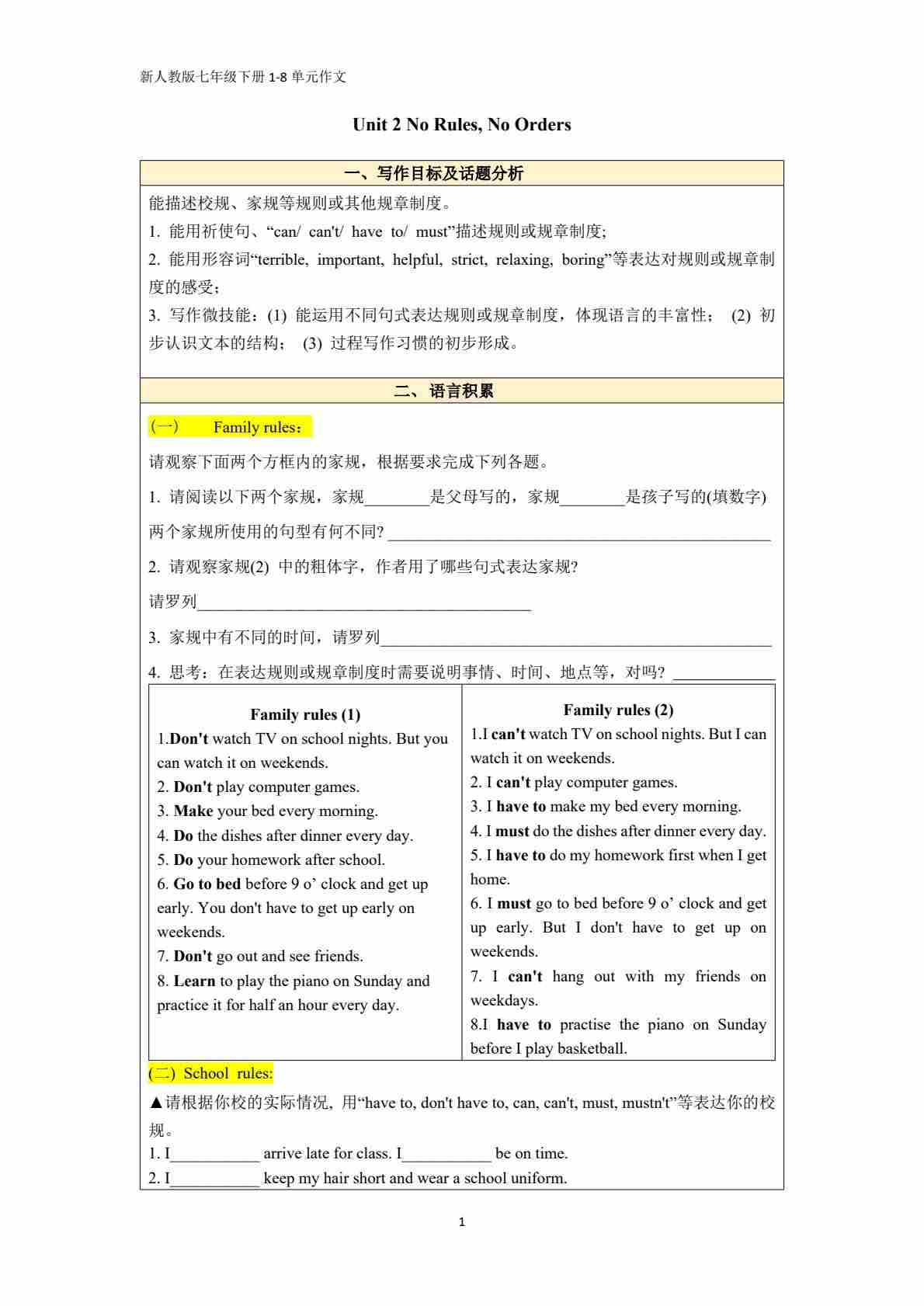 Unit 2 No Rules,No Order 规则(单元写作精练)(原卷版)