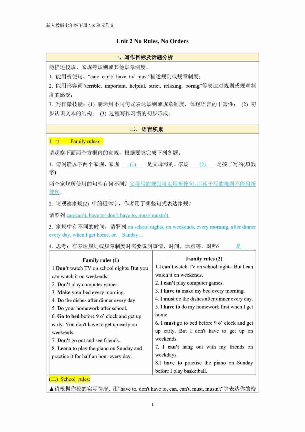 Unit 2 No Rules,No Order 规则(单元写作精练)(解析版)