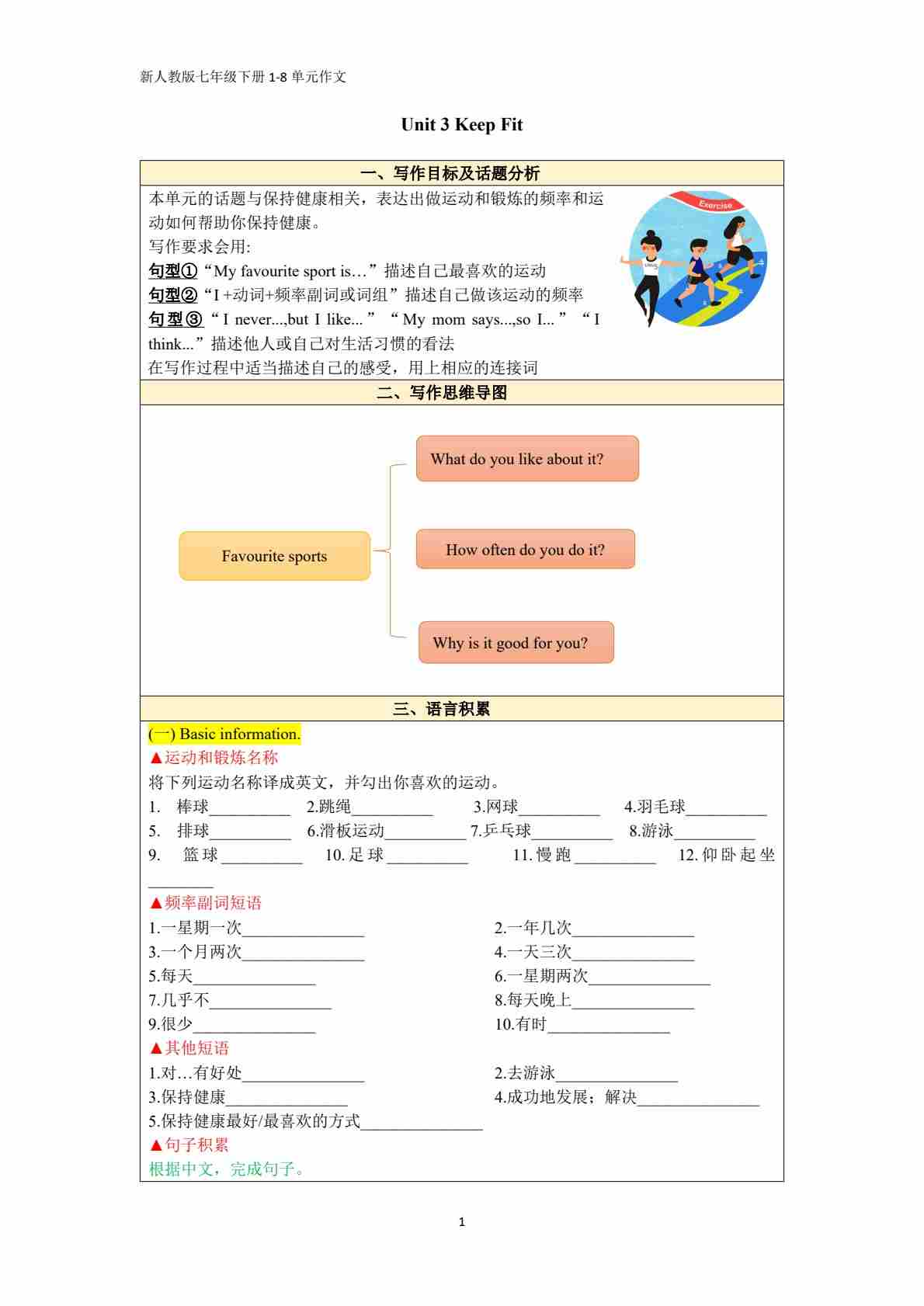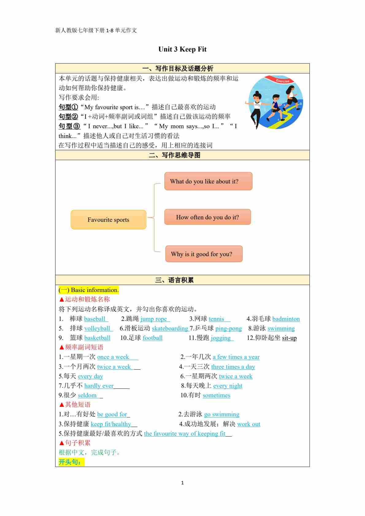 Unit 3 Keep Fit 运动与健康(单元写作精练)(原卷版)