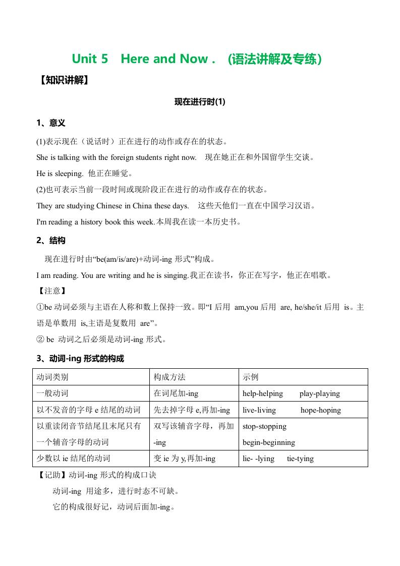 Unit 5 Here and Now.(语法讲解及专练)(学生版)