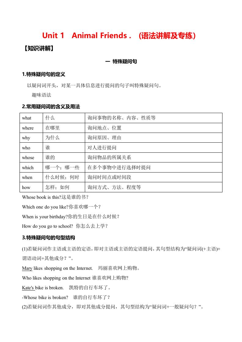Unit 1 Animal friends .(语法讲解及专练)(学生版)