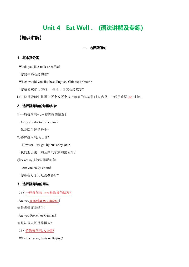 Unit 4 Eat Well.(语法讲解及专练)(学生版)