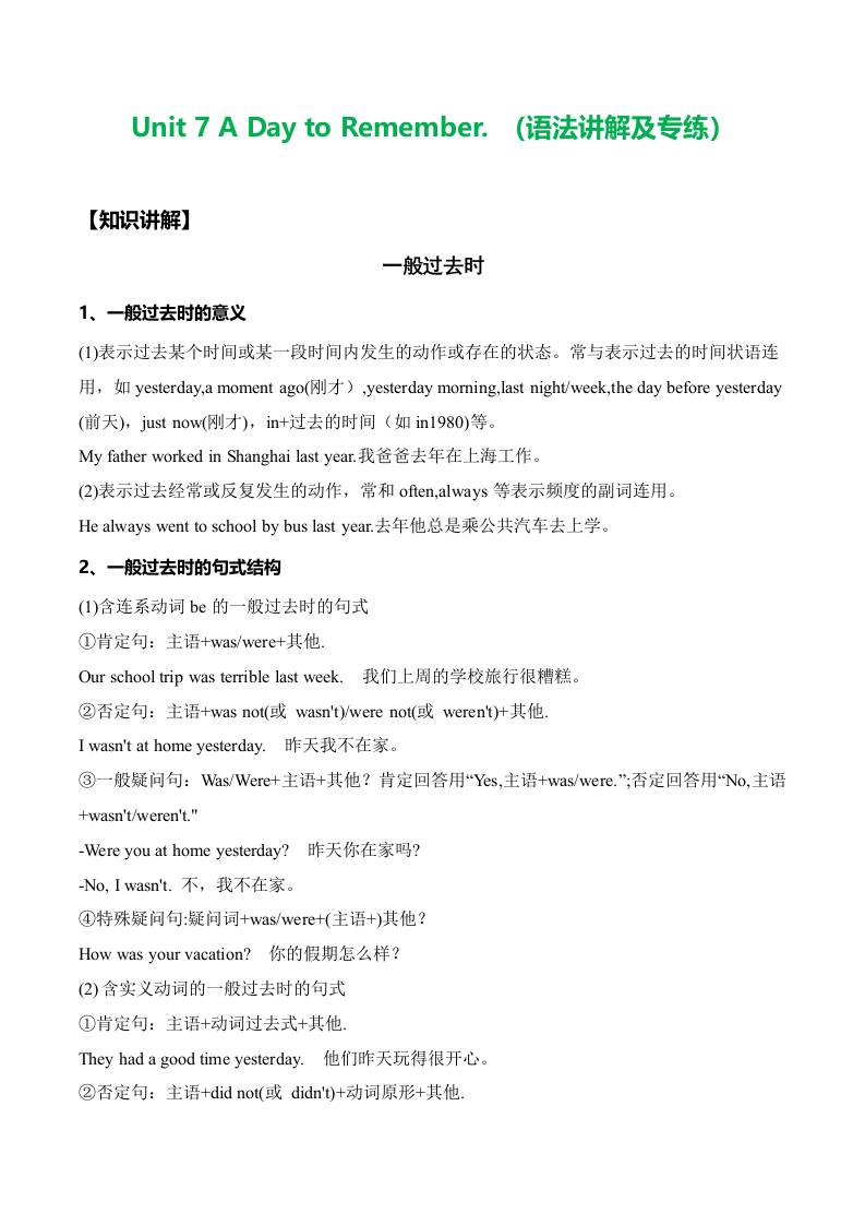 Unit 7 A Day to Remember .(语法讲解及专练)(学生版)