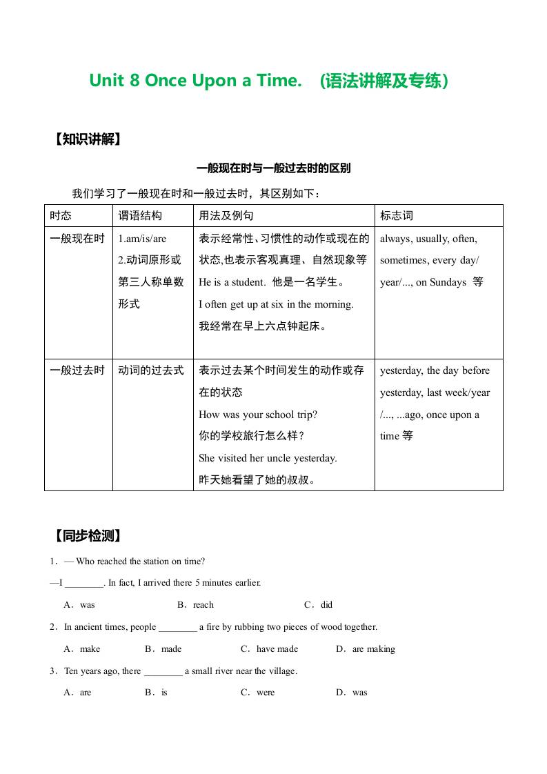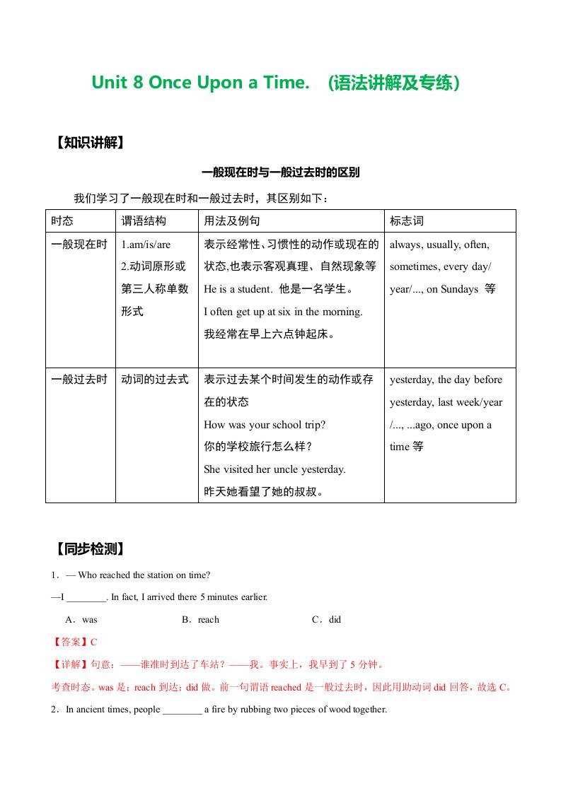 Unit 8 Once Upon a Time.(语法讲解及专练)(学生版)