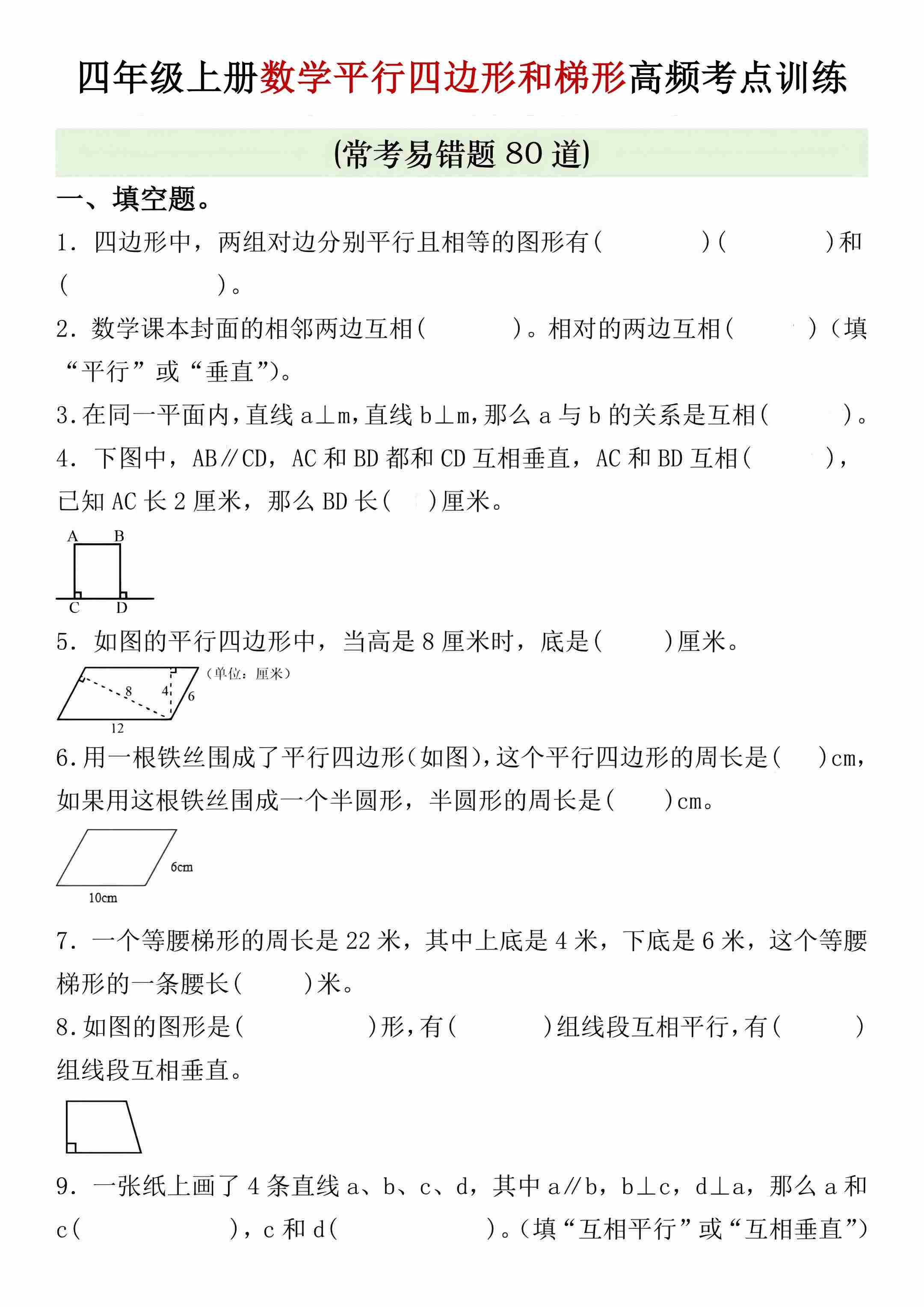 四年级(上)数学四边形和梯形高频考点训练