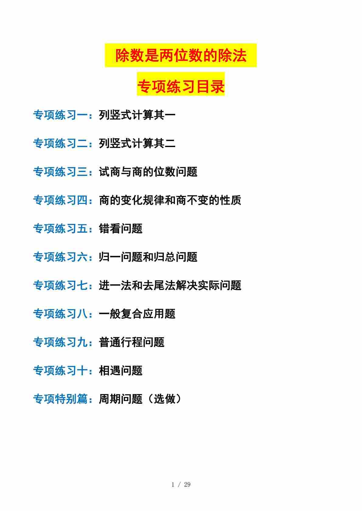 四(上)数学口算竖式脱式应用题每日一练60天(60页)