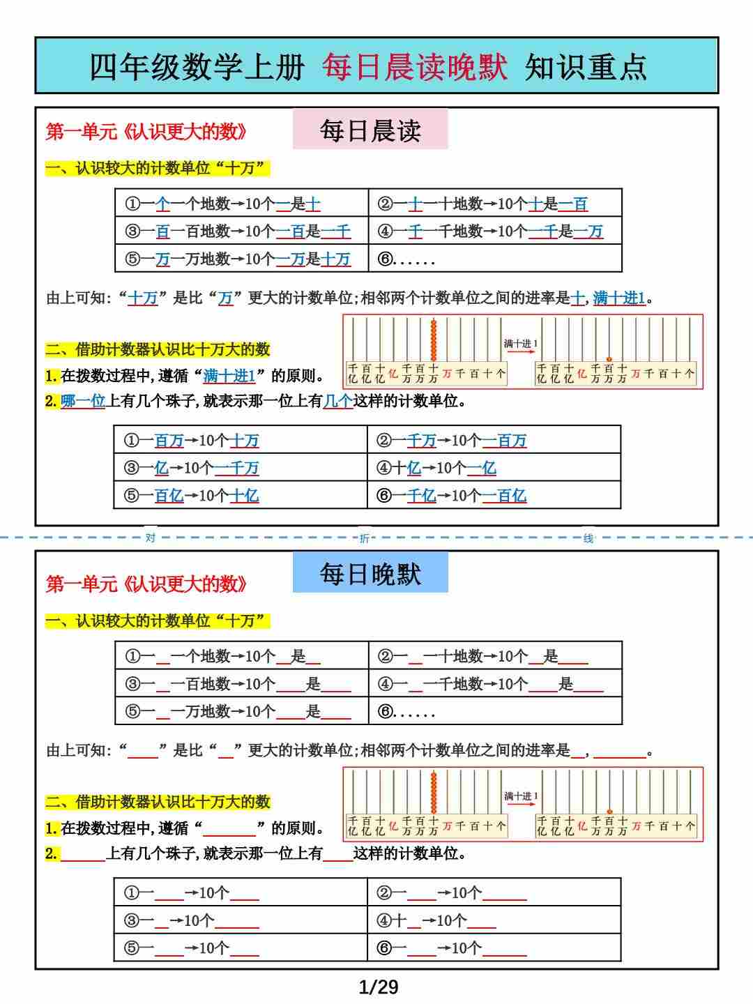 四上数学北师大版重点知识晨读晚默
