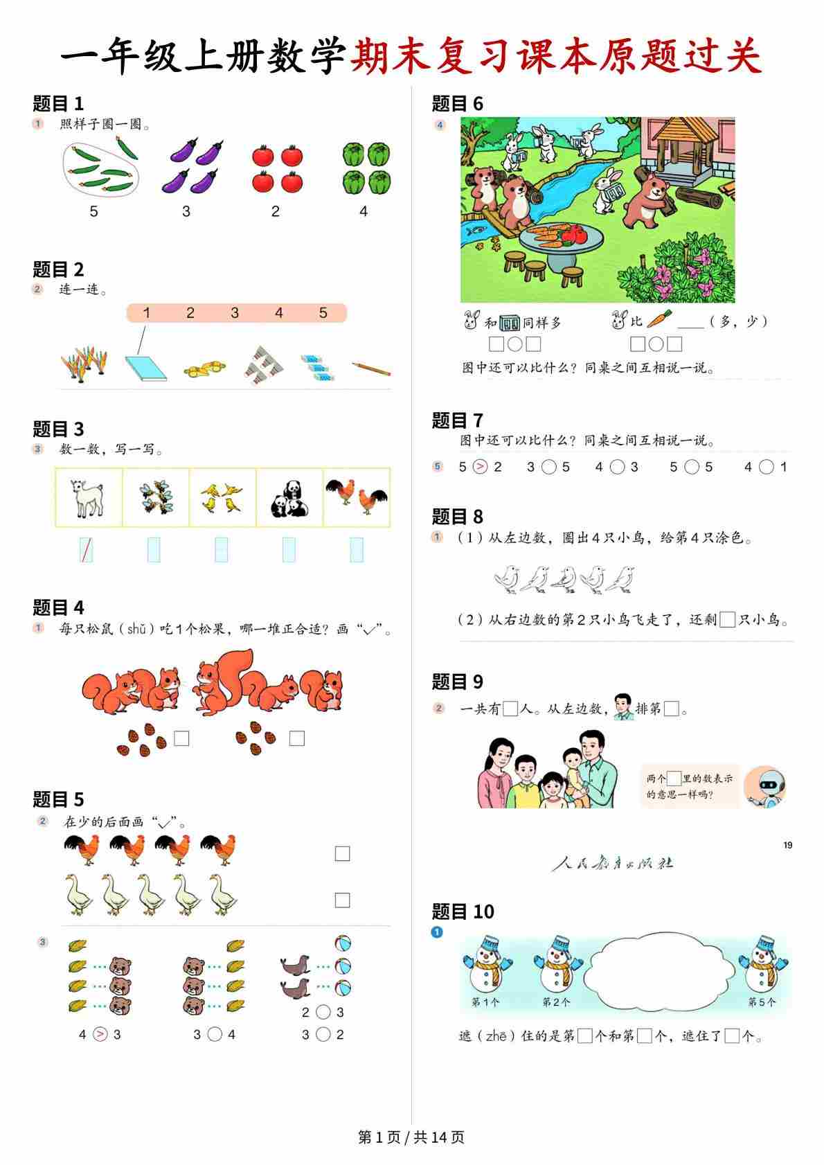 一年级(上)数学 期末复习课本原题过关