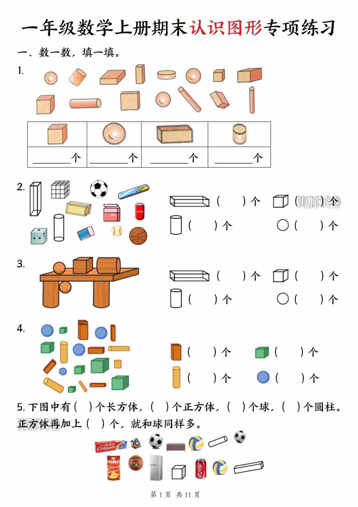一年级(上)数学期末认识图形专项练习